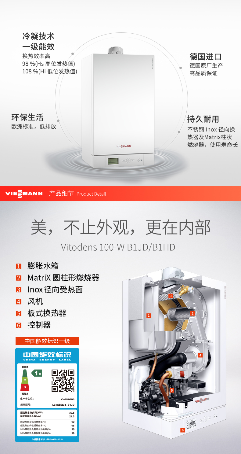菲斯曼国产燃气采暖壁挂炉_家用暖气片地暖炉100-W A1JE22/24/30/36KW